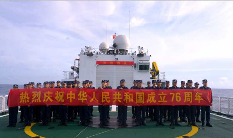 金秋十月,红旗招展。在中华人民共和国成立76周年的喜庆日子里,中国海警局直属第三局所属各单位在广袤的海疆一线举行庆祝活动。海警执法员们以“海疆有我在,请祖国放心”的誓言,将炽热祝福献给伟大的祖国。