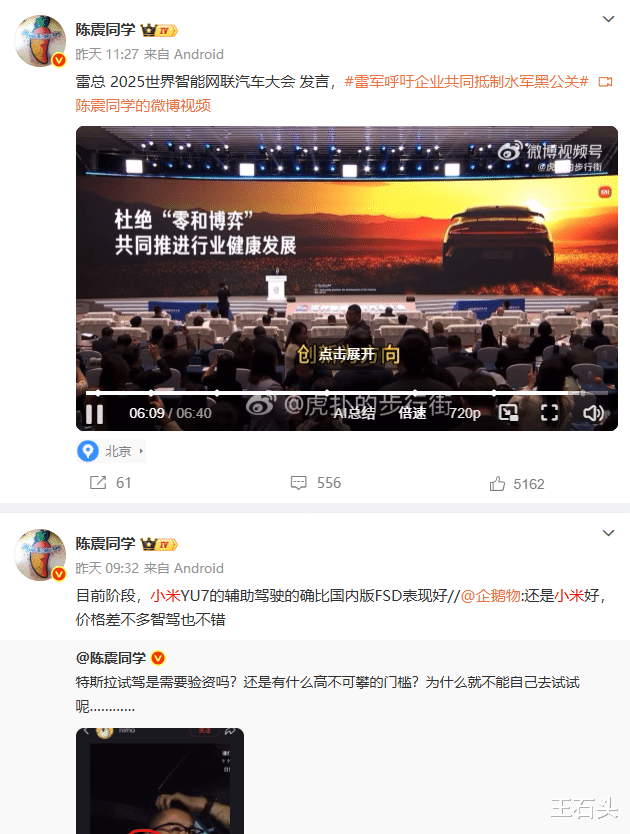 还有那个陈震,之前可能跟小米还有点不愉快,这会儿也释放出“友好信号”。